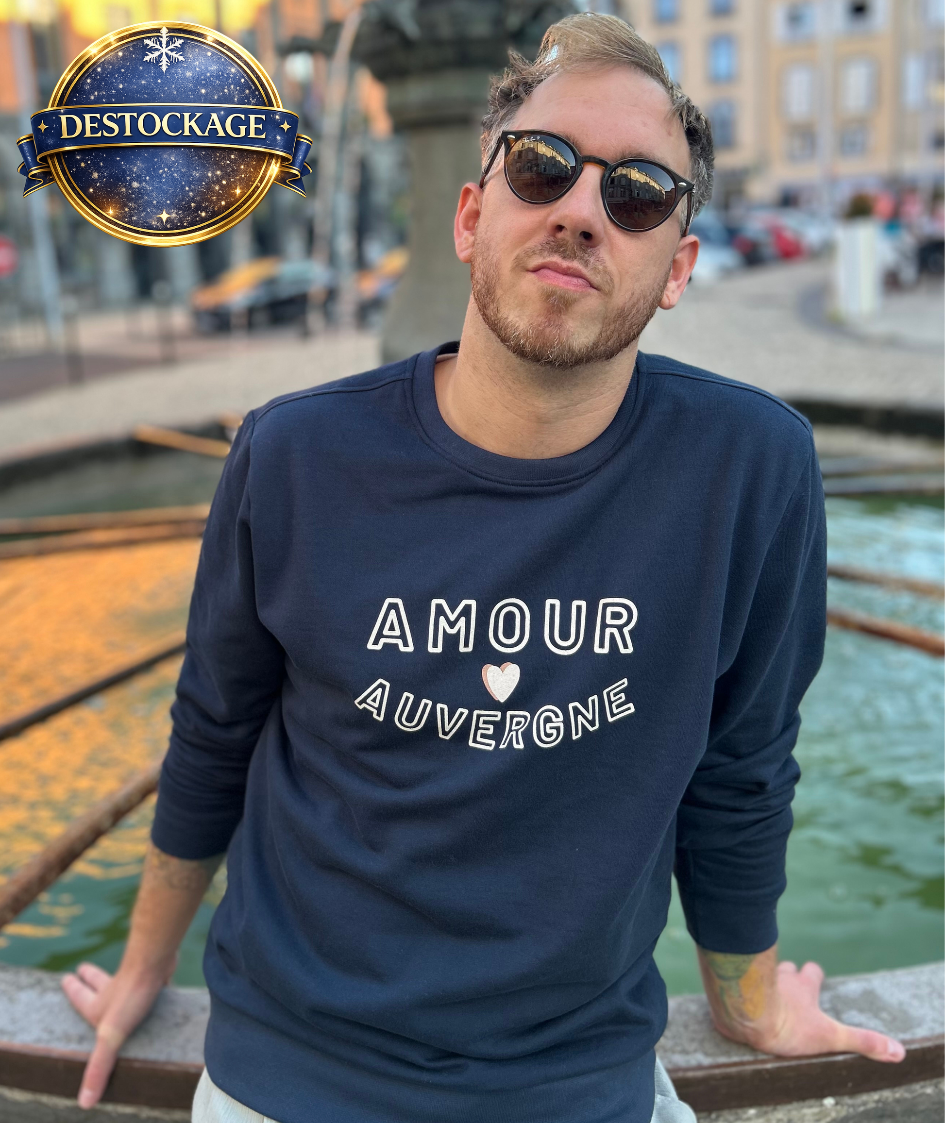 Sweat disponible en bleu marine avec une sérigraphie en 2 couleurs (crème, camel))